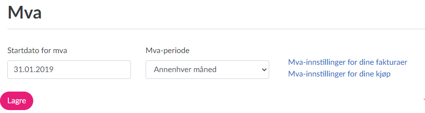 Dette kan kun redigeres hvis selskapet ditt er mva-pliktig og registrert for mva. Hvis du ikke er mva-pliktig, kan du ikke endre på dette.