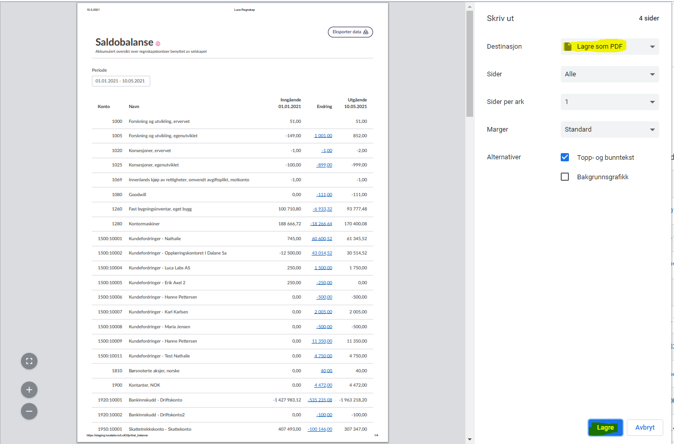Denne hjelpeartikkelen går gjennom hvordan du kan lagre en regnskapsrapport som PDF.