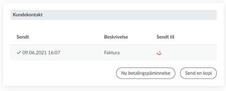 Sjekk om fakturaen har blitt vellykket sendt. Det gjør du ved å gå til “Salg” > “Fakturaer”. Finn fakturaen det gjelder og klikk på redigeringspennen ved siden av den. Under “Kundekontakt” vises alle utsendelser som er gjort på fakturaen.