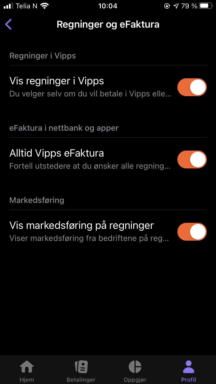 Man må ha aktivert at man kan motta fakturaer i selve Vipps-appen. Dette gjøres på følgende måte: