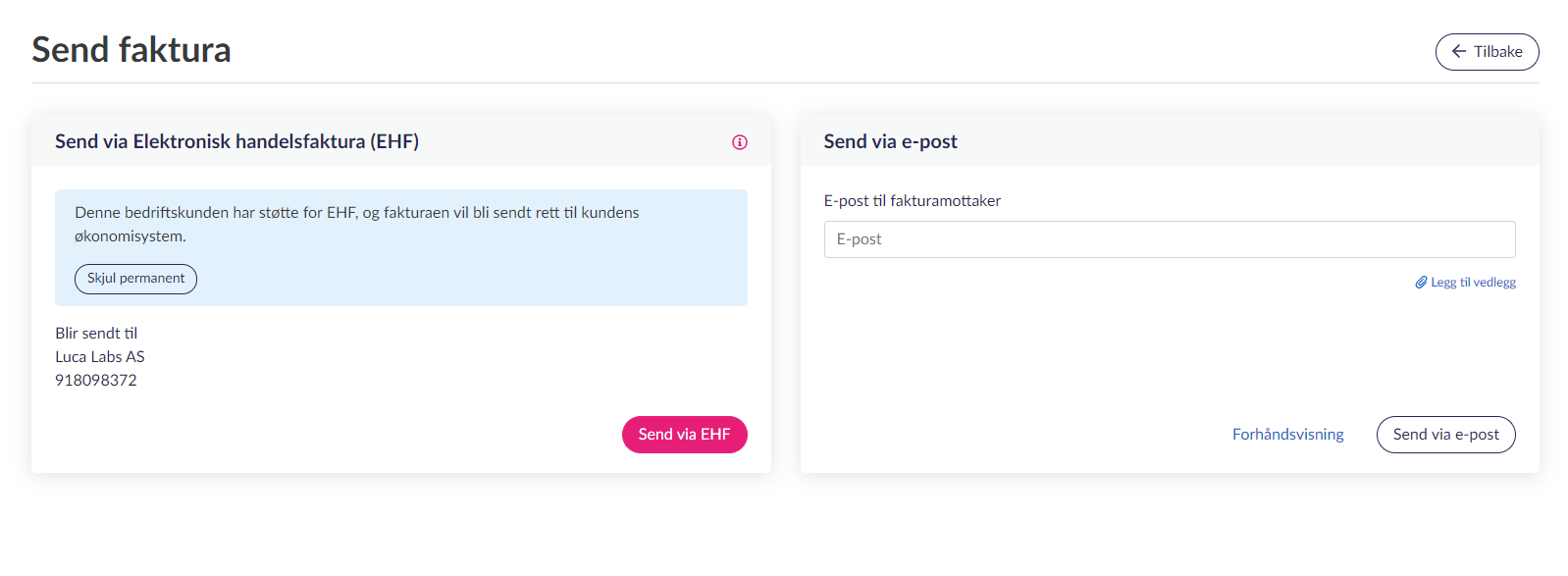 • EHF-faktura (Elektronisk handelsformat) kan kun sendes til bedrifter